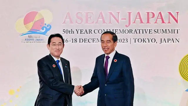 President Jokowi and PM Fumio Kishida at the Summit Celebrating 50 Years of ASEAN-Japan Friendly Relations and Cooperation at The Okura Hotel, Sunday 17 December 2023. (BPMI Presidential Secretariat)Enlarge